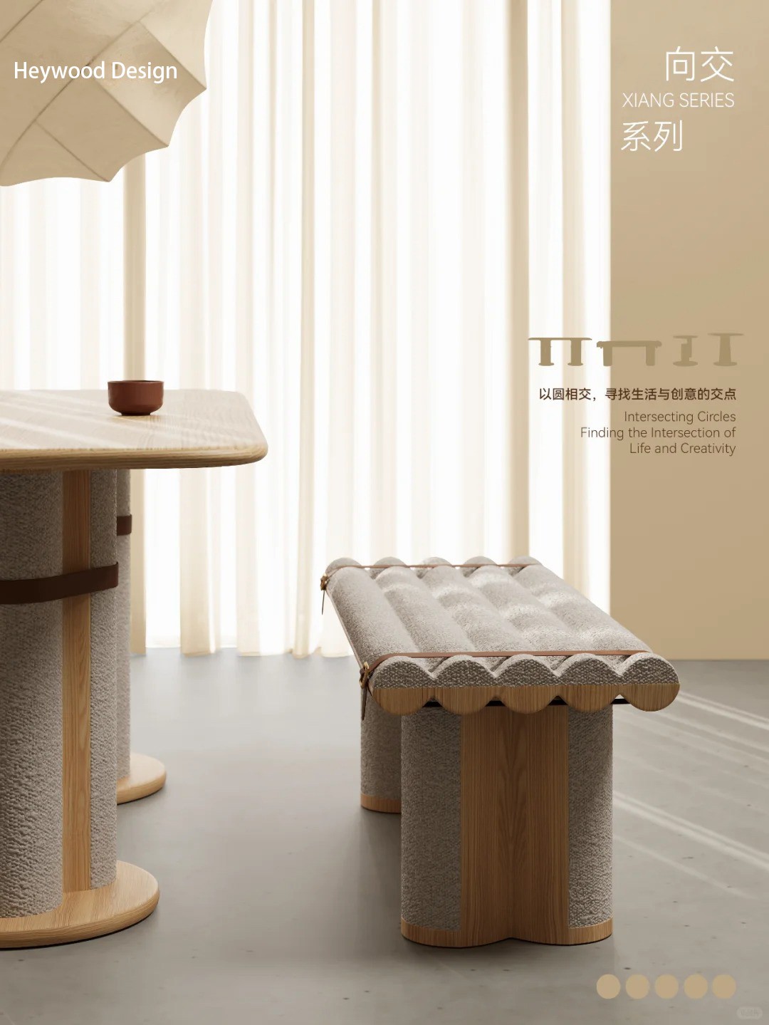 The interweaving of circles in daily life allows you to feel the dynamic creativity. The interweaving series of soft lambskin and solid wood creates a serene moment
